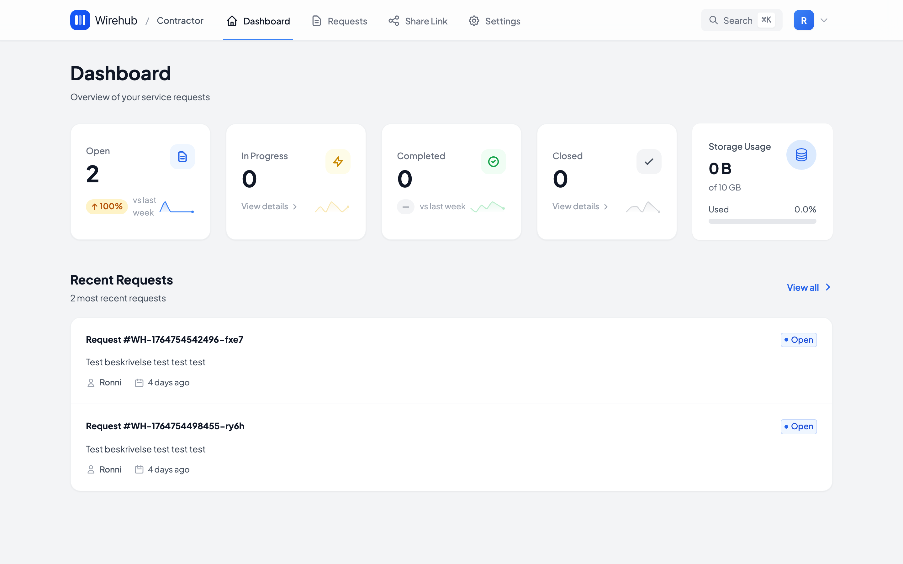 Wirehub giver dig og dine samarbejdspartnere overblik fra første henvendelse til afsluttet opgave.