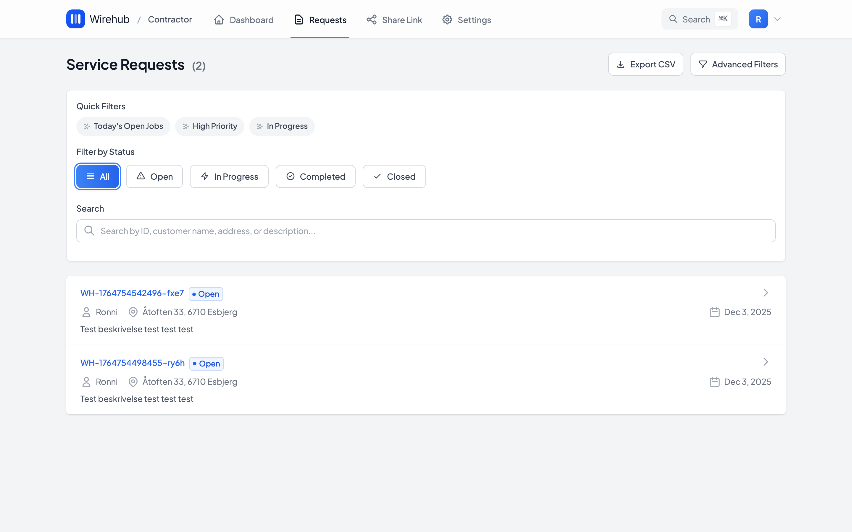 Wirehub giver administratorer og håndværkere ét fælles system til opgaver, kommunikation og dokumentation. Mindre koordinering, færre misforståelser – og hurtigere løsning af hver eneste opgave.